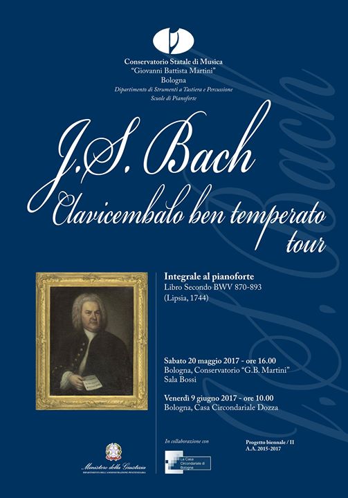 A un anno dalla prima tappa del “Clavicembalo ben temperato tour” che toccò Bologna, Forlimpopoli e Cesena, arriva nella capitale emiliana il secondo evento curato dallo stimato musicologo e compositore Mario Ruffini, coincidente col Libro Secondo della grande opera bachiana. Primo appuntamento sabato 20 maggio 2017 alle ore 16:00 nella Sala Bossi del Conservatorio G.B. Martini e replica venerdì 9 giugno 2017 alle ore 10:00 alla Casa Circondariale Dozza.